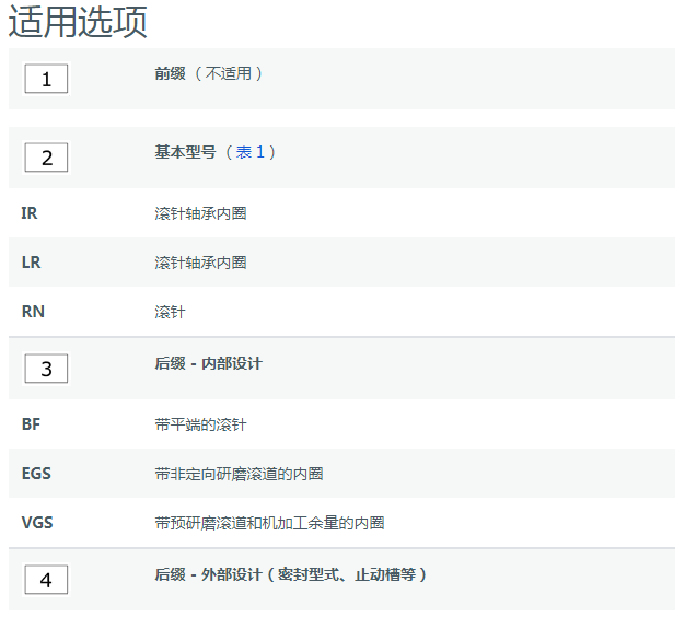 基本轴承型号系统